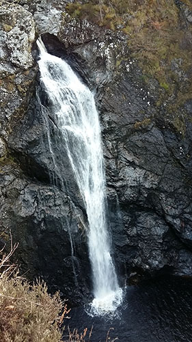 Eas a’Chual Aluinn in Assynt Parish, Sutherland: Britain’s highest waterfall (656 ft drop); best seen by boat from Kylesku; check out Google Images. Would combine with stay and/or meal at Kylesku Hotel where you can board the Kylesku boat.